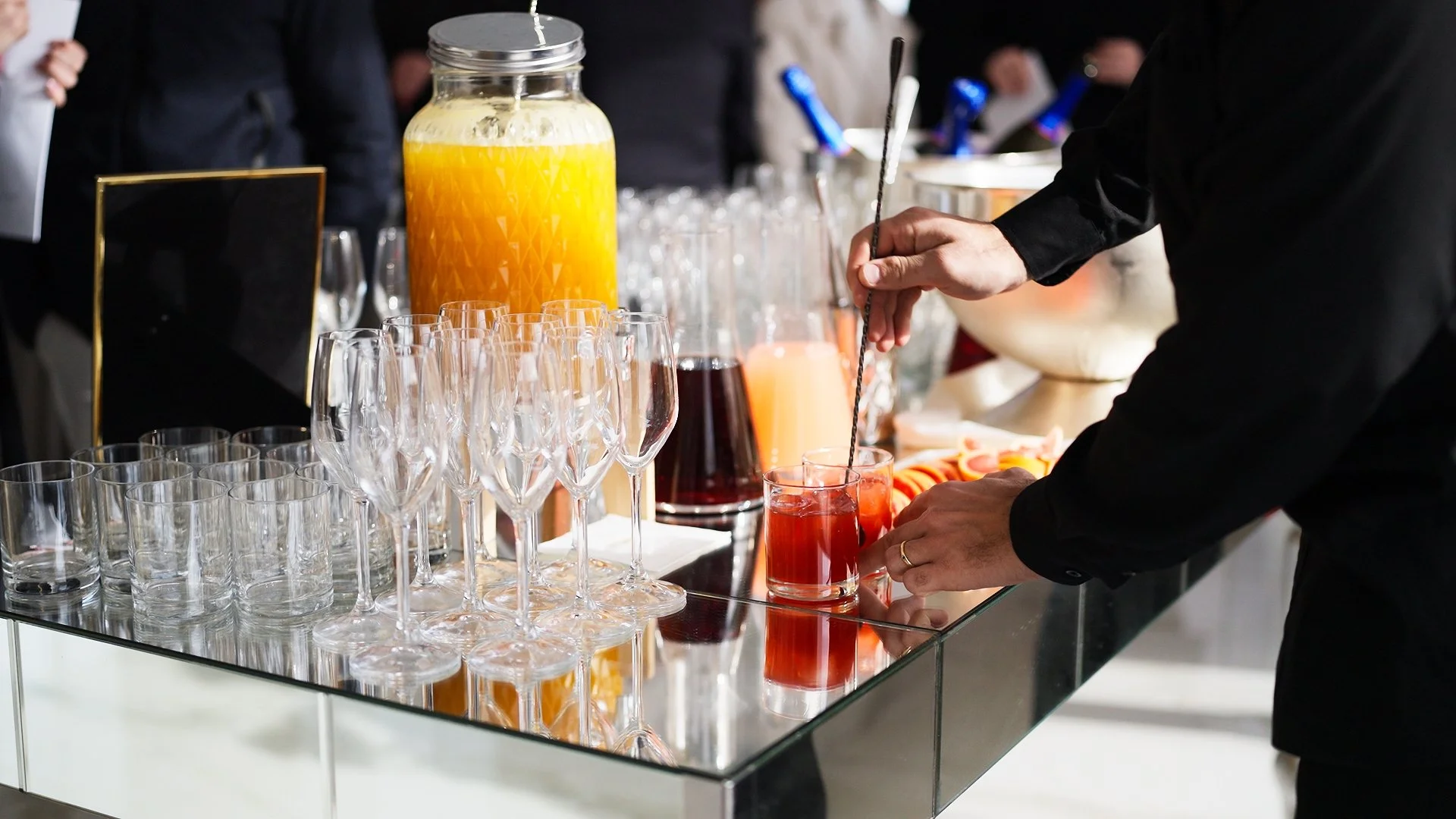 È un’occasione per rompere il ghiaccio, rilassarsi e godersi i primi brindisi in un contesto raffinato e conviviale. Il nostro servizio prevede un elegante bancone personalizzato con due bartender professionisti, una drink list con quattro cocktail a base Vermouth, una fontana con cocktail analcolico e servizio in bicchieri di vetro con ghiaccio.